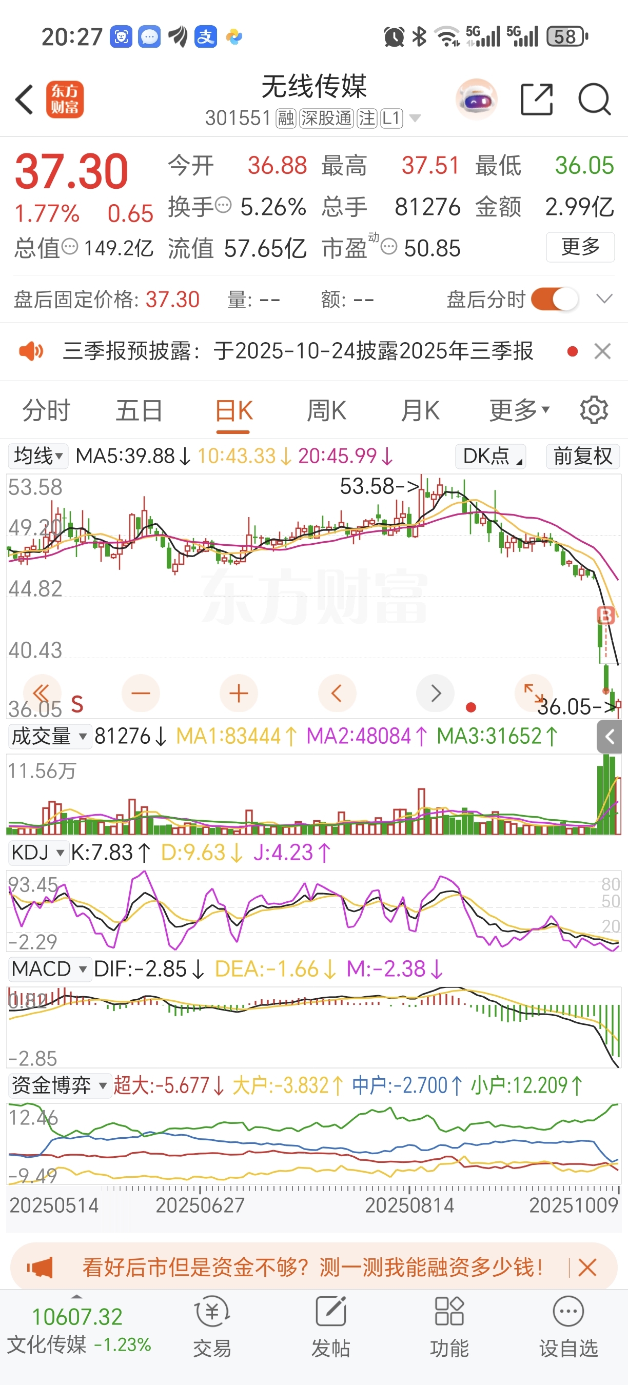 $无线传媒(SZ301551)$ 破位的我喜欢