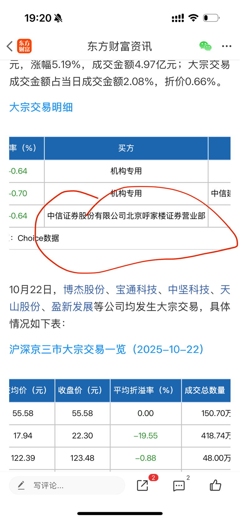 不懂就问我,最近的大宗交易都有这个席位,是不是传说中呼家楼?