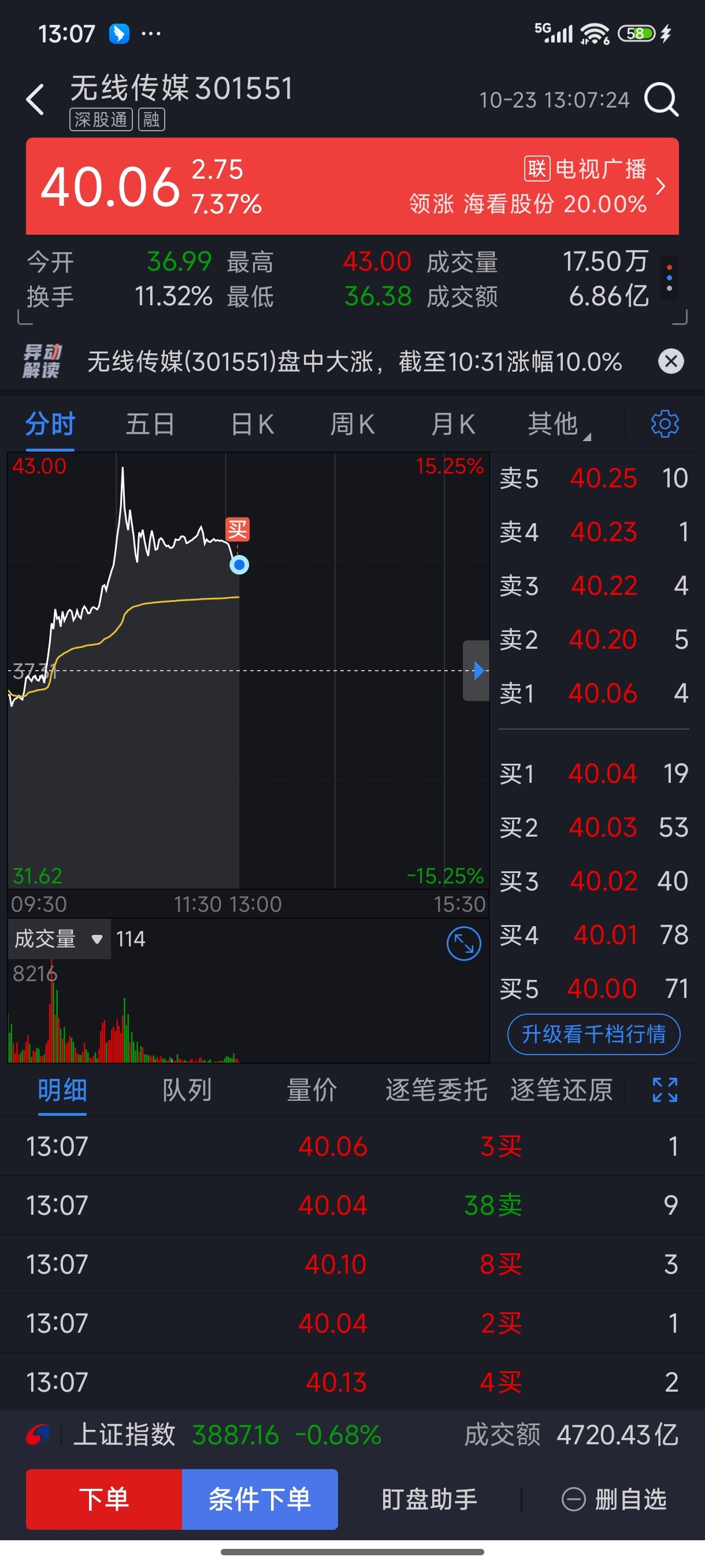 $无线传媒(SZ301551)$ 还是觉得会继续涨