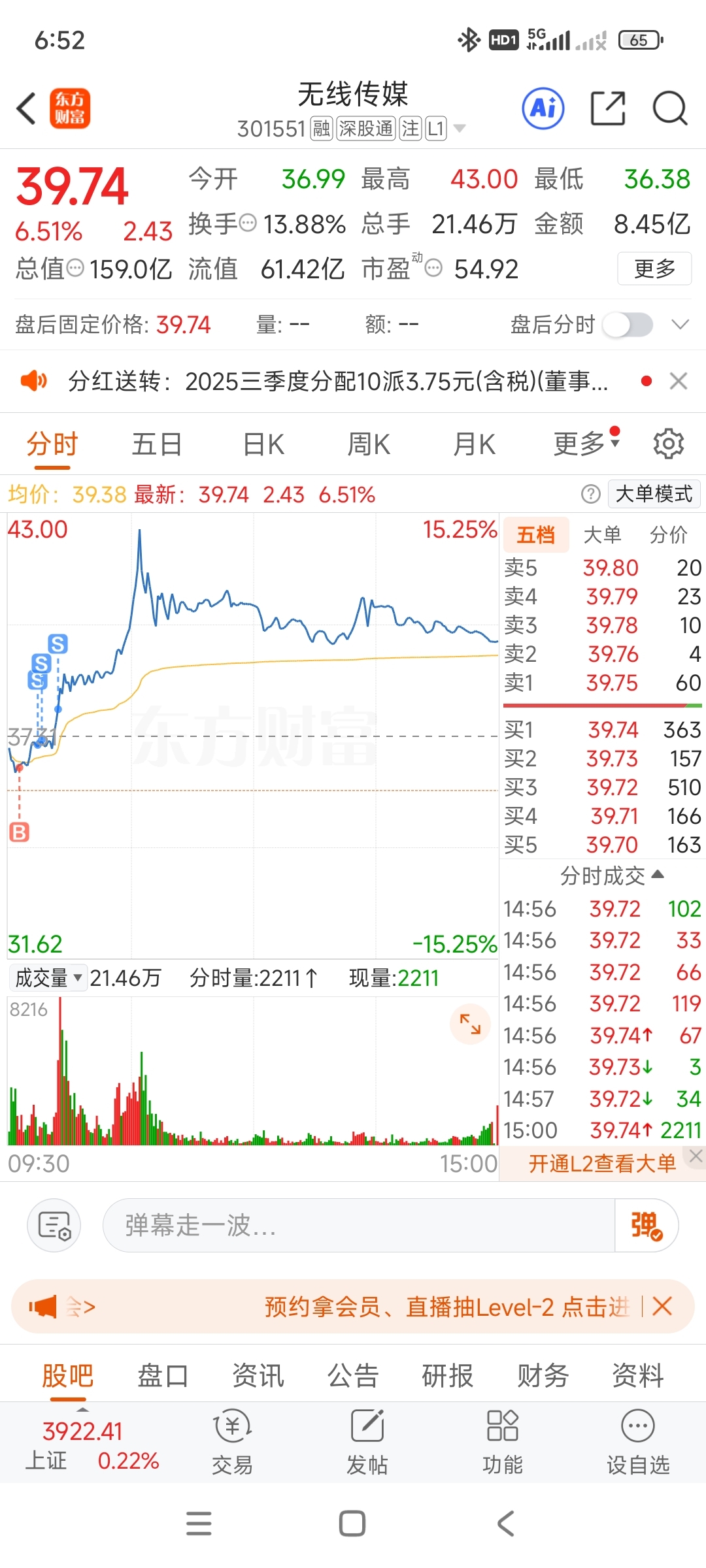 $无线传媒(SZ301551)$ 虽然卖飞的感觉很难受,但买的比卖的多,也算安慰一下自己吧