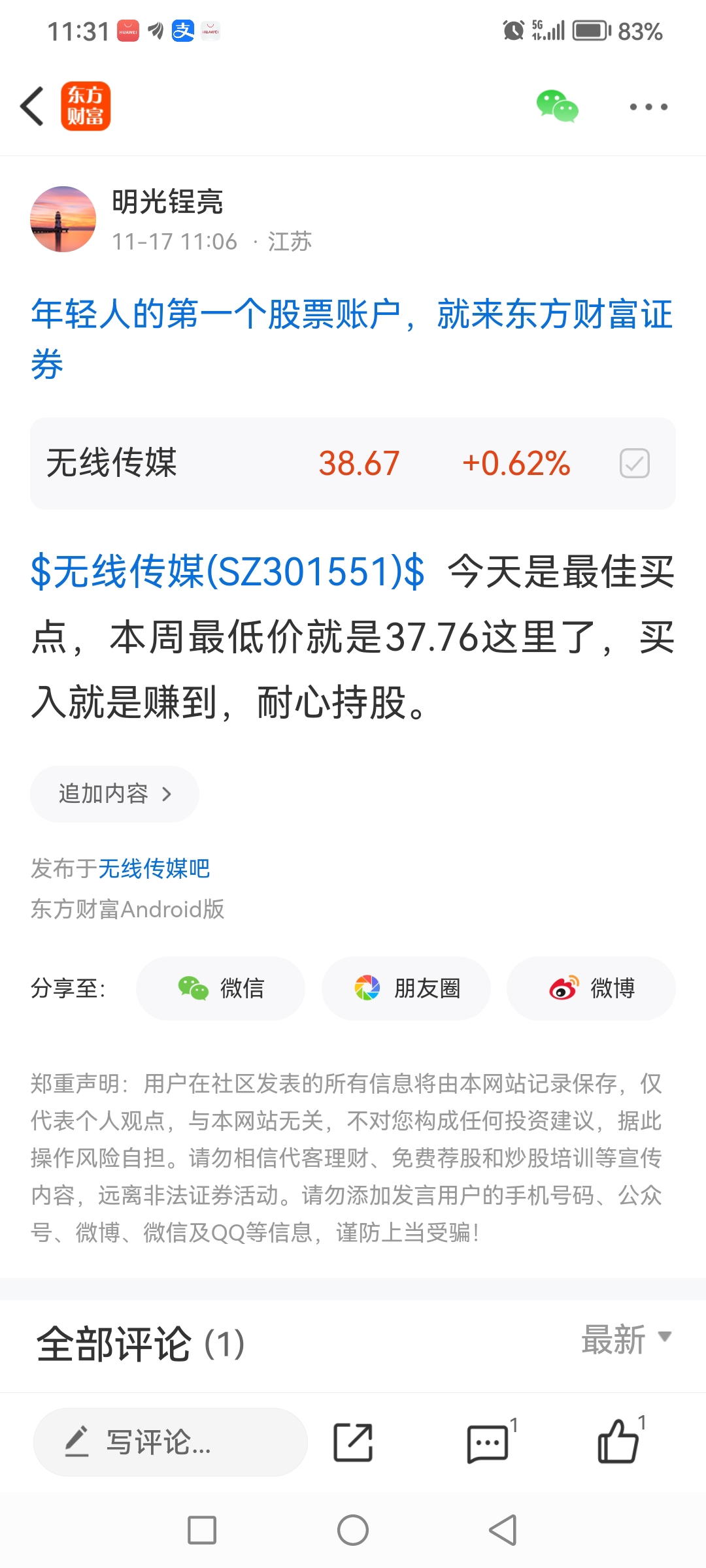 温馨提示: 1.根据《证券法》规定,禁止编造、传播虚假信息或者误导性信息,扰乱证券市场;2.用户在本社区发表的所有资料、言论等仅代表个人观点,与本网站立场无关,不对您构成任何投资建议。用户应基于自己的独立判断,自行决定证券投资并承担相应风险。《东方财富社区管理规定》