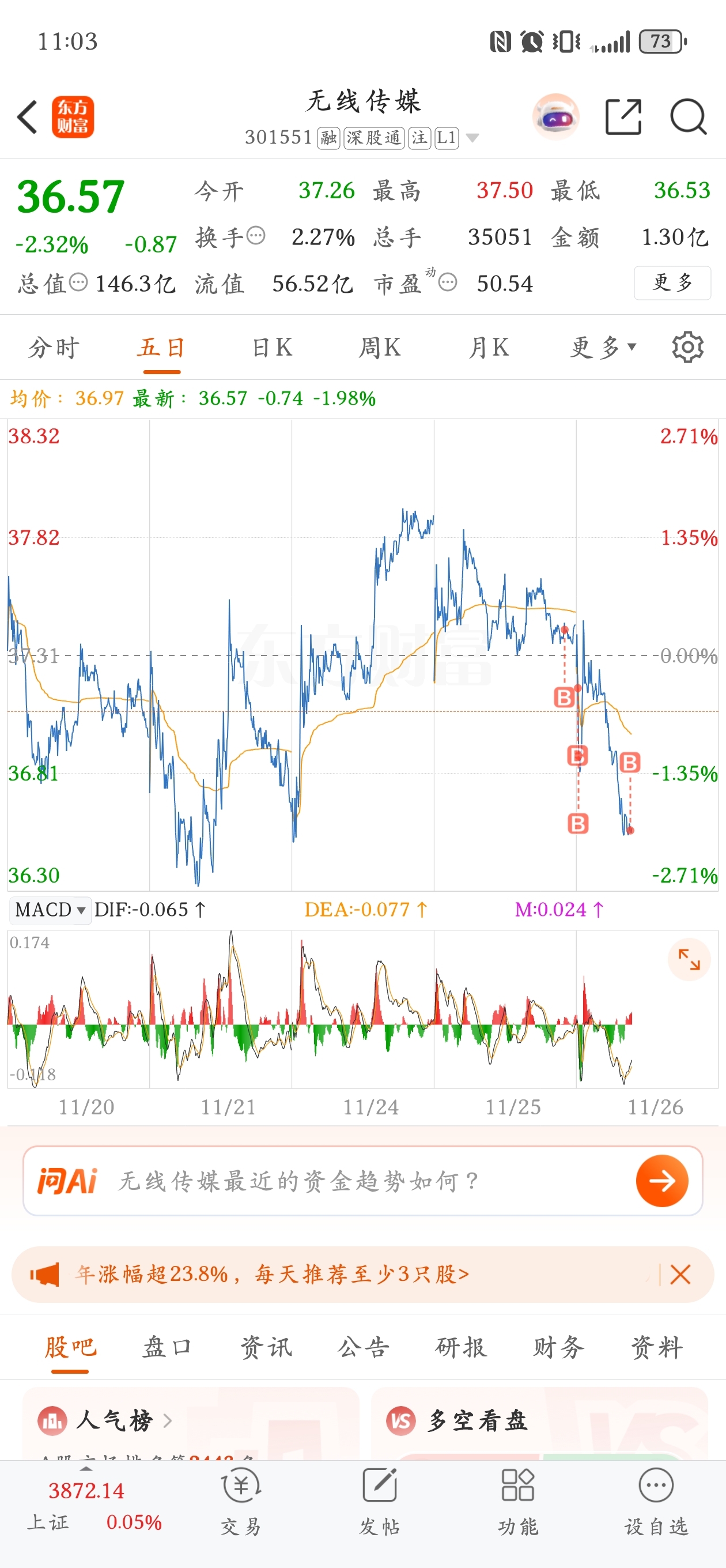 $无线传媒(SZ301551)$ 我这点钱接不住啊