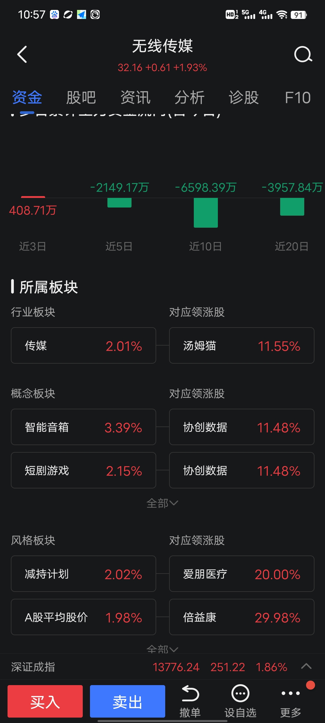 $无线传媒(SZ301551)$ 涨不过版块有点弱