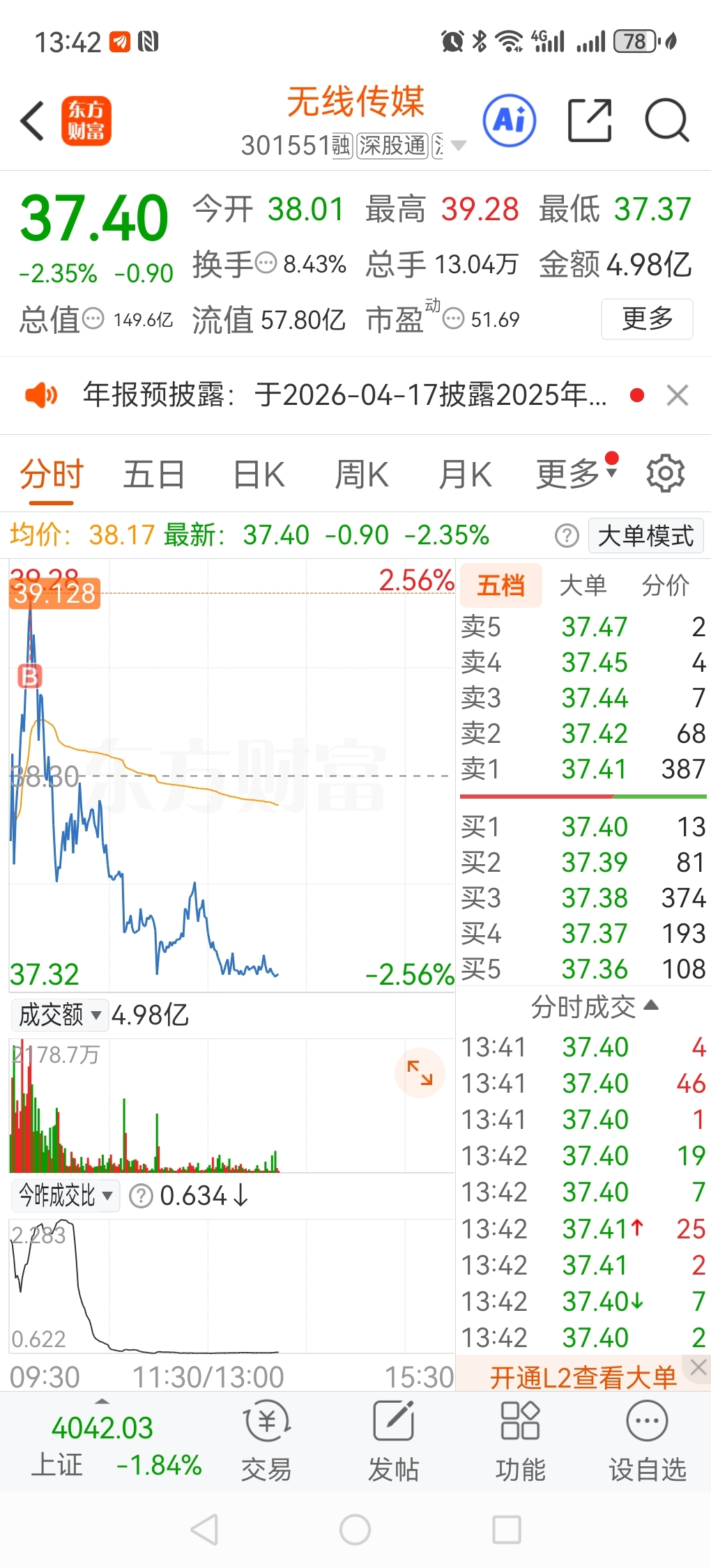 $无线传媒(SZ301551)$ 大面一碗啊!