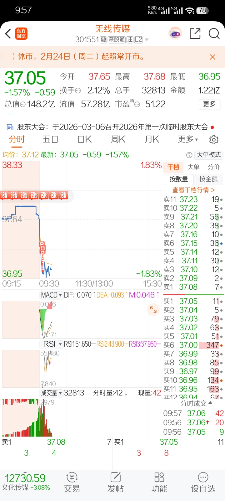 $无线传媒(SZ301551)$ 买早了,又被套了