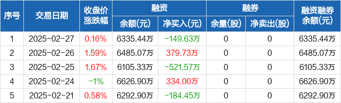科力装备:融资净偿还149.63万元,融资余额6335.44万元(02-27)