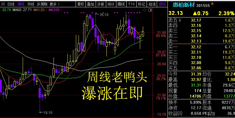 惠桕新材!!周线老鸭头,瀑涨在即!