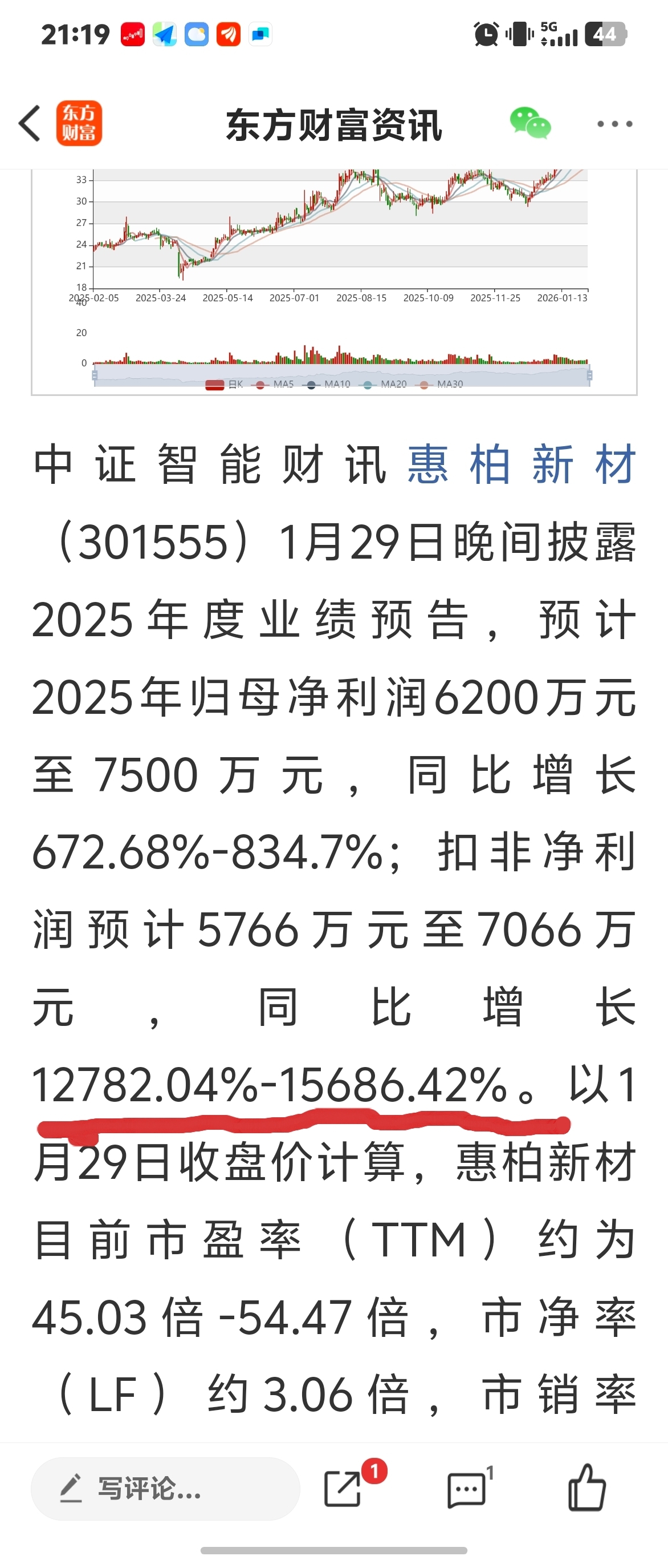 $惠柏新材(SZ301555)$ 扣非净利同比增长15000%!不得了!