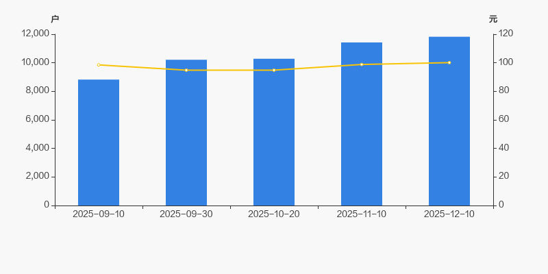 自2025年9月10日以来,公司股东户数连续4期上涨,截至目前增幅为34.02%。2025年9月10日至2025年12月10日区间股价上涨1.62%。