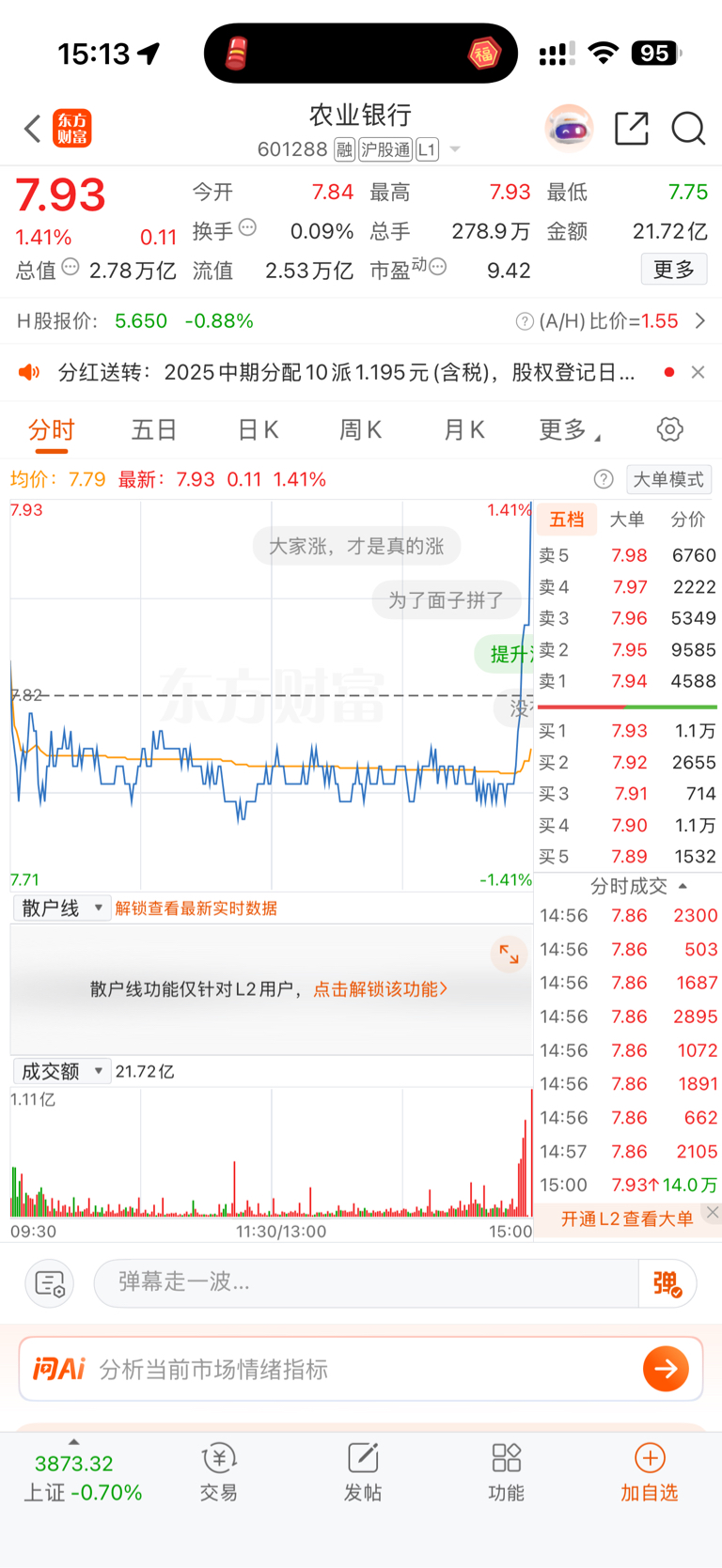 笑死,尾盘量化差点没压住,农业银行狂拉!托指数,农云量化以为自己也是农业银行系的