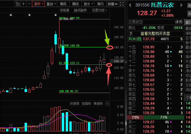 以老夫20多年炒股实战经验看,此票在123.1左右有支撑,在140.2左右有压力,做短线适合在此区间内高抛低吸,低吸高抛。除非做T团队放量突破压力和支持改变趋势后再改变模式!
