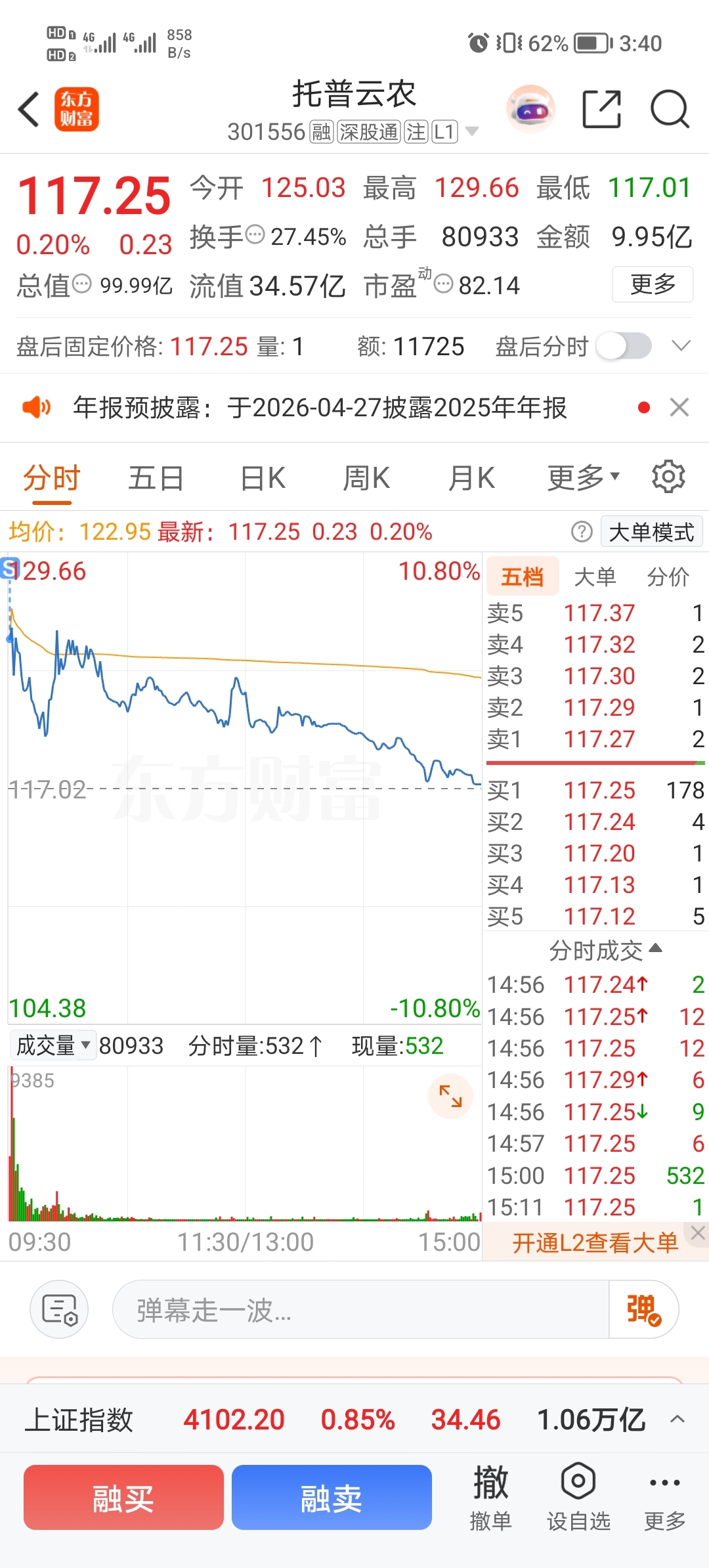 $托普云农(SZ301556)$ 集合竞价跑早了,没吃到10个点