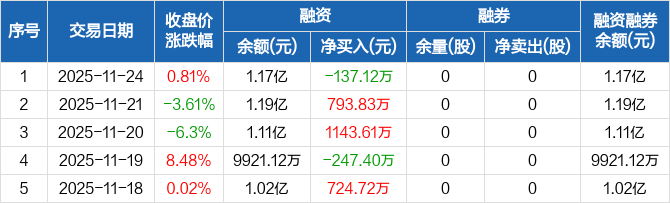 常友科技:融资净偿还137.12万元,融资余额1.17亿元(11-24)