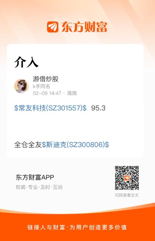 温馨提示: 1.根据《证券法》规定,禁止编造、传播虚假信息或者误导性信息,扰乱证券市场;2.用户在本社区发表的所有资料、言论等仅代表个人观点,与本网站立场无关,不对您构成任何投资建议。用户应基于自己的独立判断,自行决定证券投资并承担相应风险。《东方财富社区管理规定》