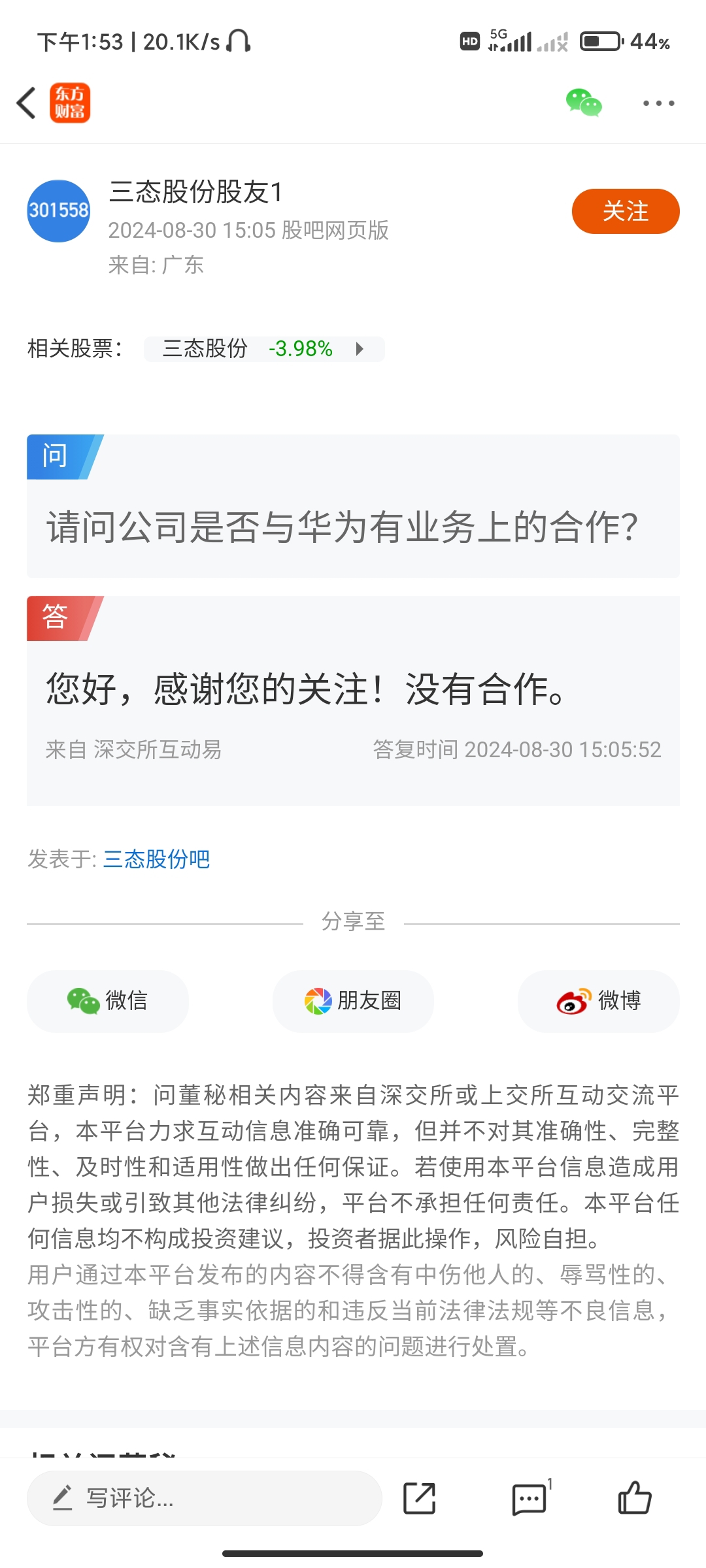 温馨提示: 1.根据《证券法》规定,禁止编造、传播虚假信息或者误导性信息,扰乱证券市场;2.用户在本社区发表的所有资料、言论等仅代表个人观点,与本网站立场无关,不对您构成任何投资建议。用户应基于自己的独立判断,自行决定证券投资并承担相应风险。《东方财富社区管理规定》