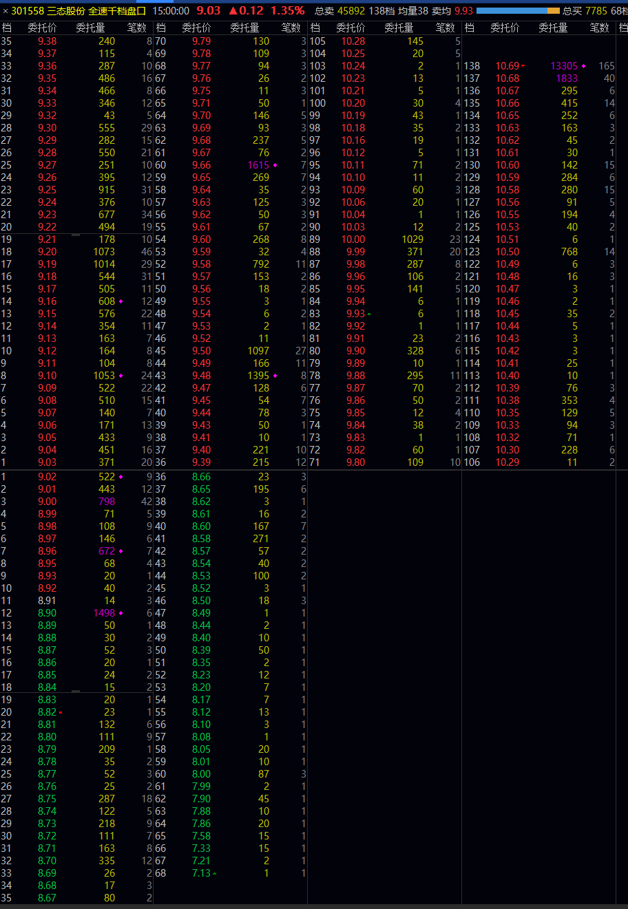 三态股份:千档盘口。交投不活跃,主力自己玩。