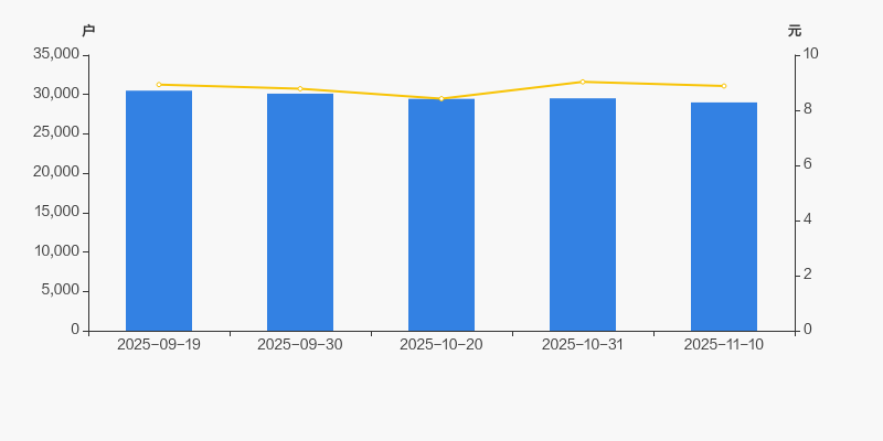 2025年9月19日至今,公司股东户数有所下降,区间跌幅为4.89%。2025年9月19日至2025年11月10日区间股价下降0.56%。