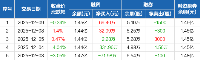 三态股份:融资净买入69.4万元,融资余额1.45亿元(12-09)