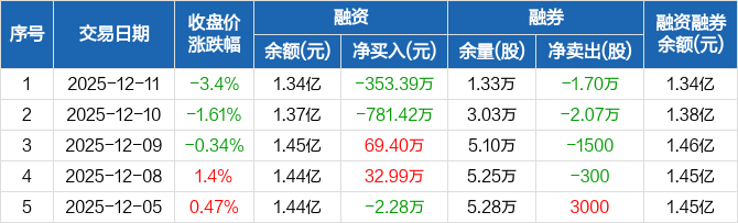 三态股份:融资净偿还353.39万元,融资余额1.34亿元(12-11)