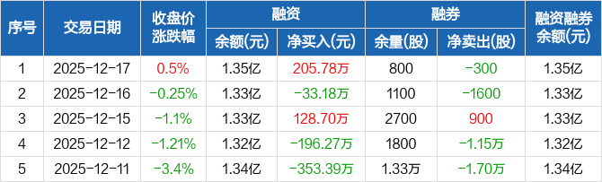 三态股份:融资净买入205.78万元,融资余额1.35亿元(12-17)