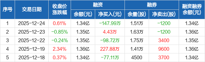 三态股份:融资净偿还147.99万元,融资余额1.34亿元(12-24)