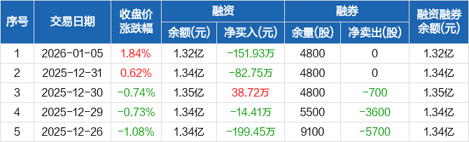 三态股份:融资净偿还151.93万元,融资余额1.32亿元(01-05)