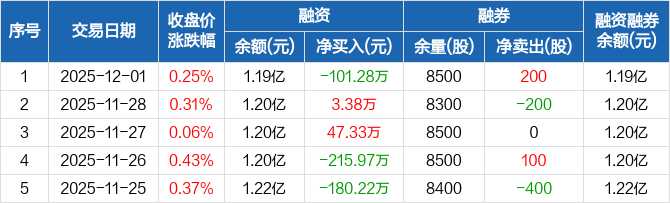 中集环科:融资净偿还101.28万元,融资余额1.19亿元(12-01)