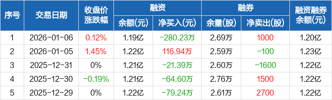 中集环科:融资净偿还280.23万元,融资余额1.19亿元(01-06)