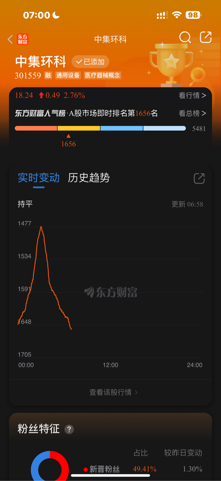 $中集环科(SZ301559)$ 人气排名的上涨通常是股价上涨的前奏!昨天4800,昨晚1800,今天1600!