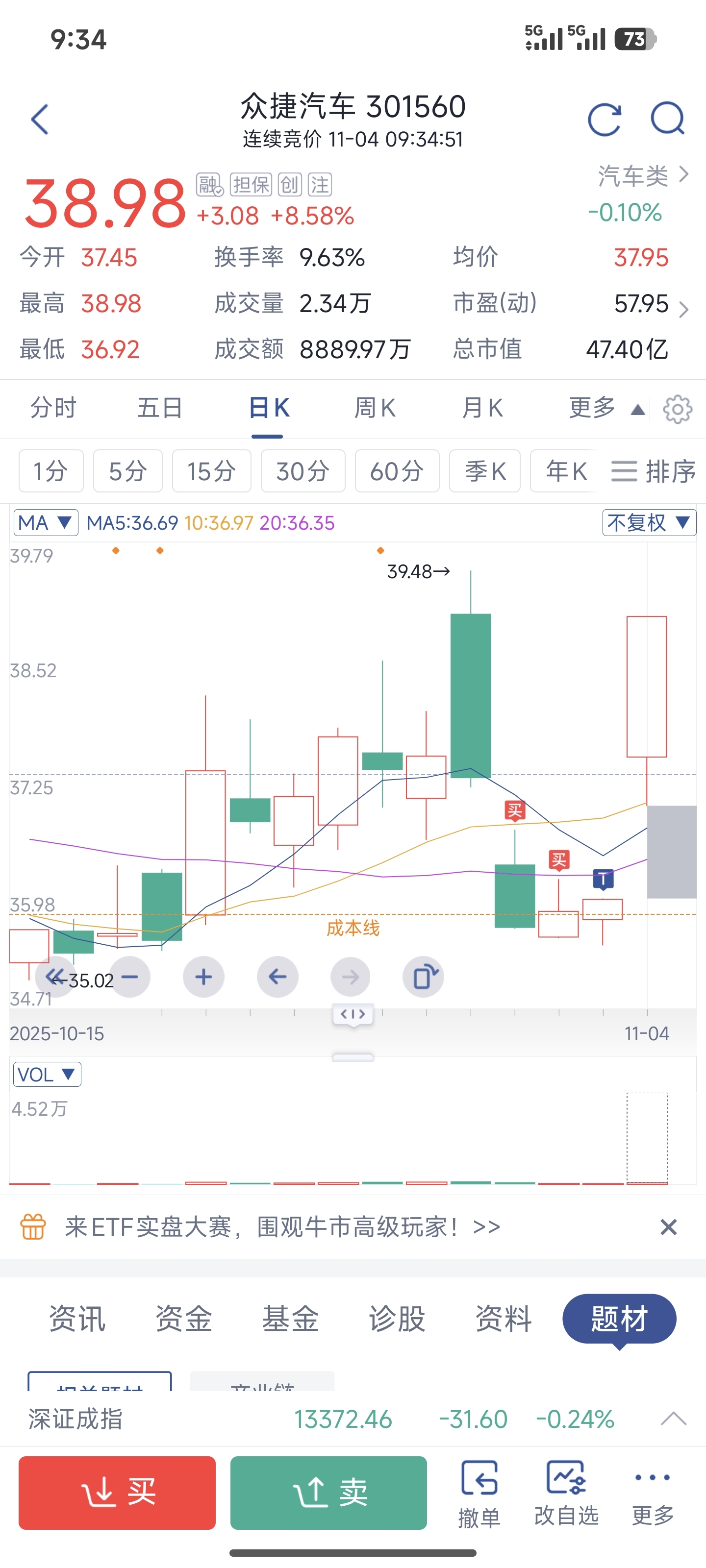 $众捷汽车(SZ301560)$ t飞了只有半仓了