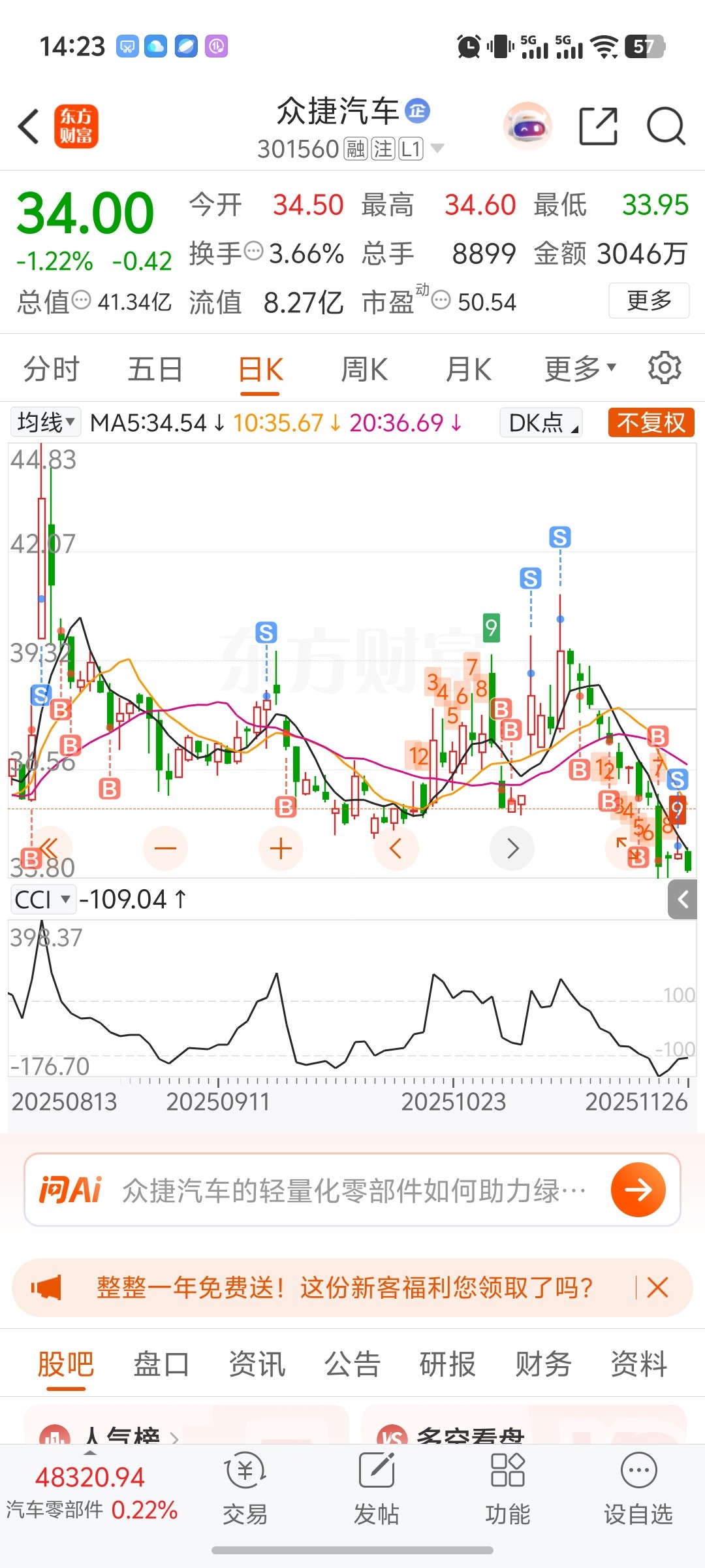 $众捷汽车(SZ301560)$ 什么时候到40呀