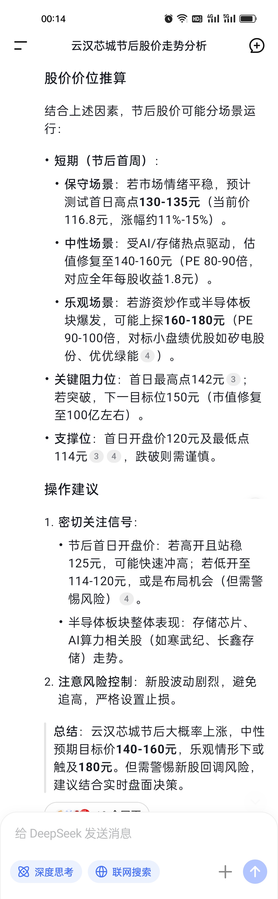 哈哈,节后冲180,deepseeK推算出来了