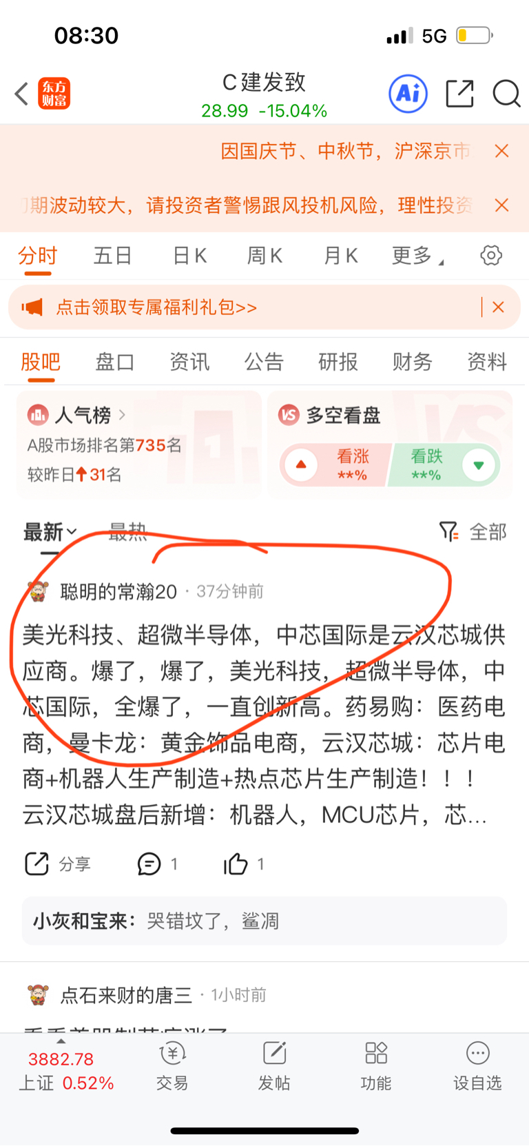 温馨提示: 1.根据《证券法》规定,禁止编造、传播虚假信息或者误导性信息,扰乱证券市场;2.用户在本社区发表的所有资料、言论等仅代表个人观点,与本网站立场无关,不对您构成任何投资建议。用户应基于自己的独立判断,自行决定证券投资并承担相应风险。《东方财富社区管理规定》
