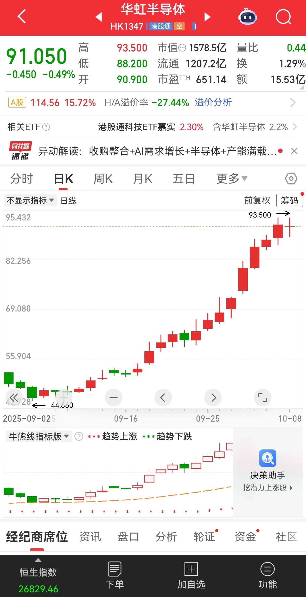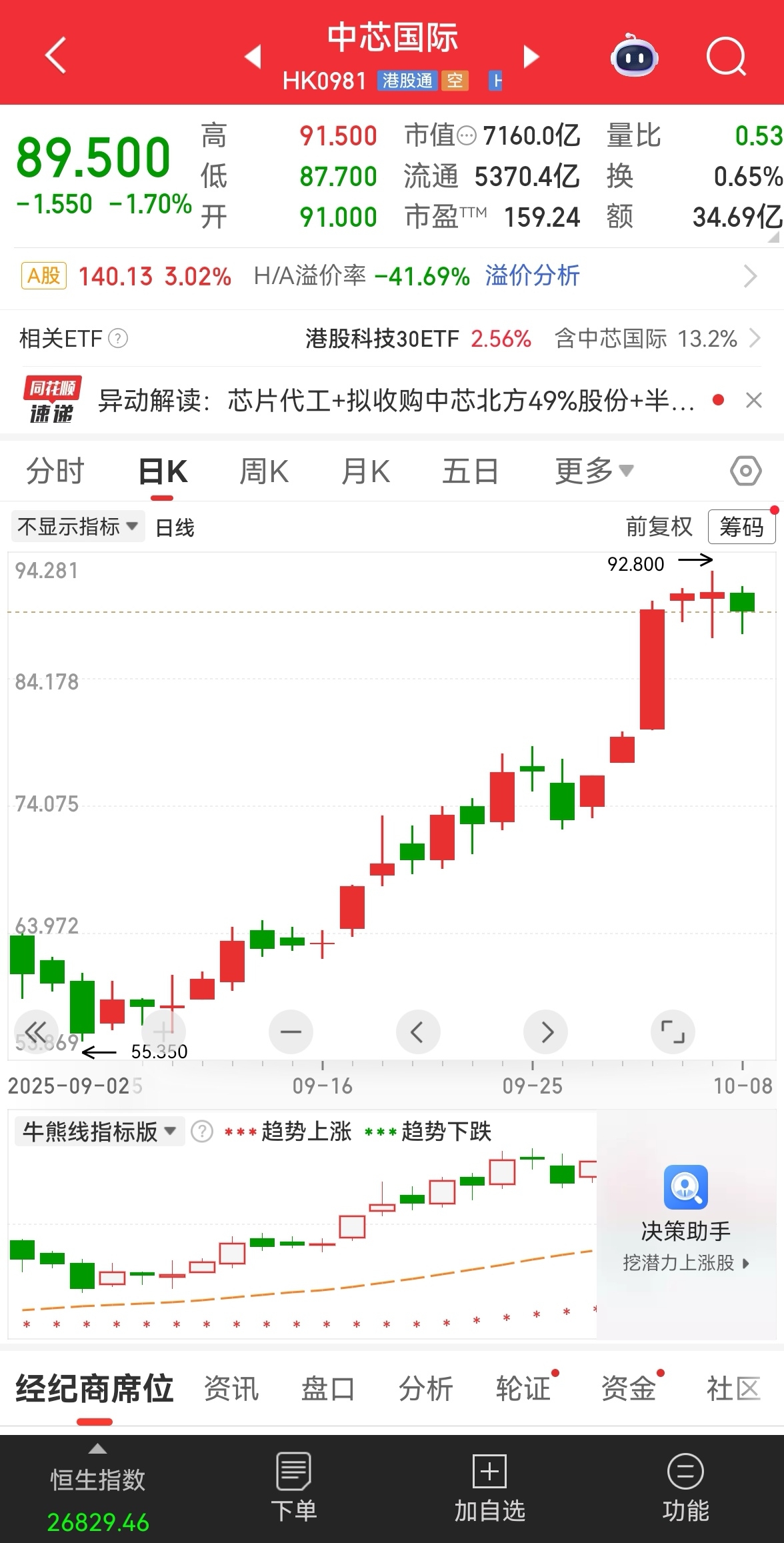 国庆期间涨幅:华虹半导体13.81%、中芯国际12.51%、美光11.06%、A