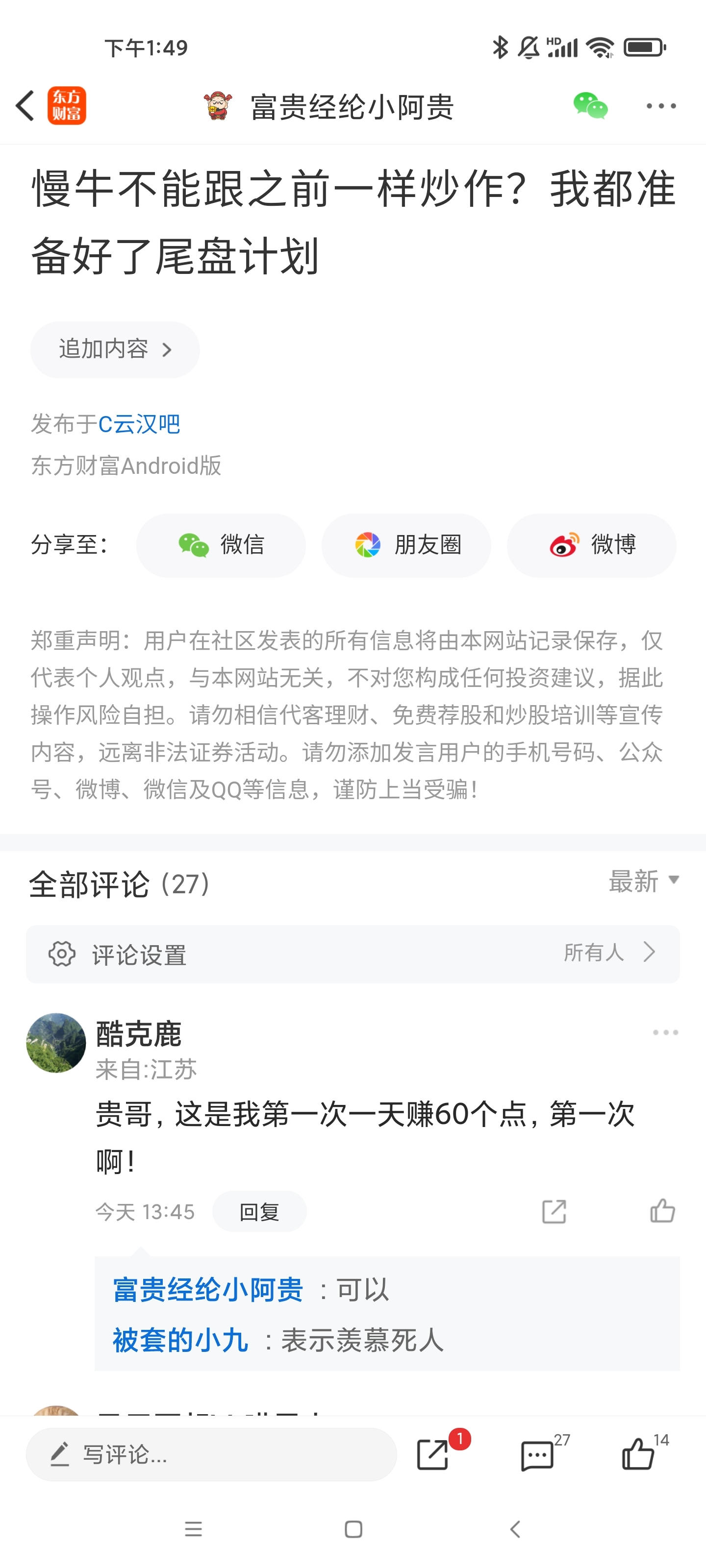 温馨提示: 1.根据《证券法》规定,禁止编造、传播虚假信息或者误导性信息,扰乱证券市场;2.用户在本社区发表的所有资料、言论等仅代表个人观点,与本网站立场无关,不对您构成任何投资建议。用户应基于自己的独立判断,自行决定证券投资并承担相应风险。《东方财富社区管理规定》