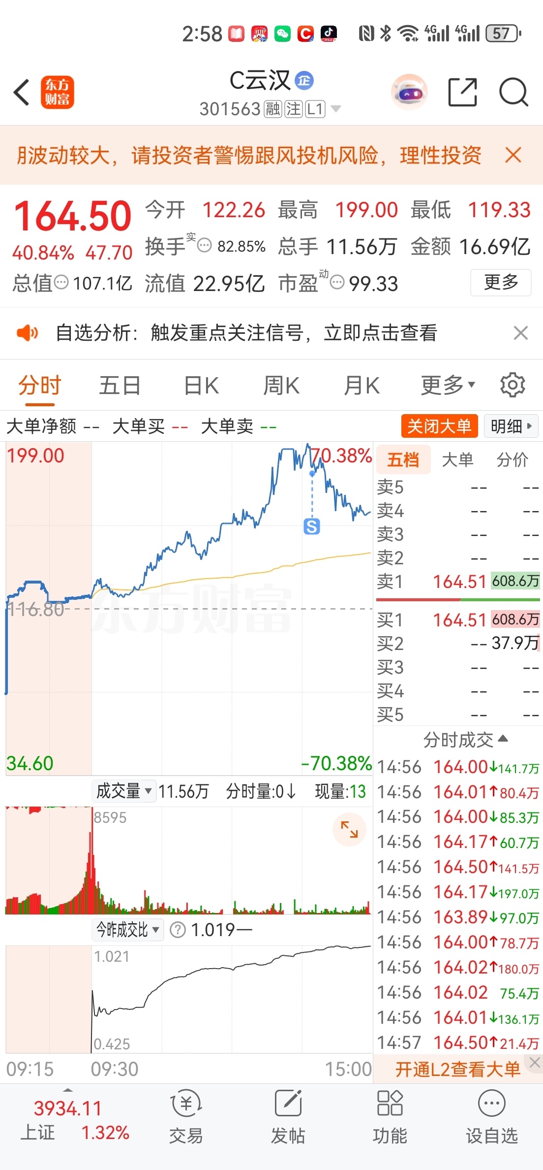 $C云汉(SZ301563)$ 明天看情况是否低吸