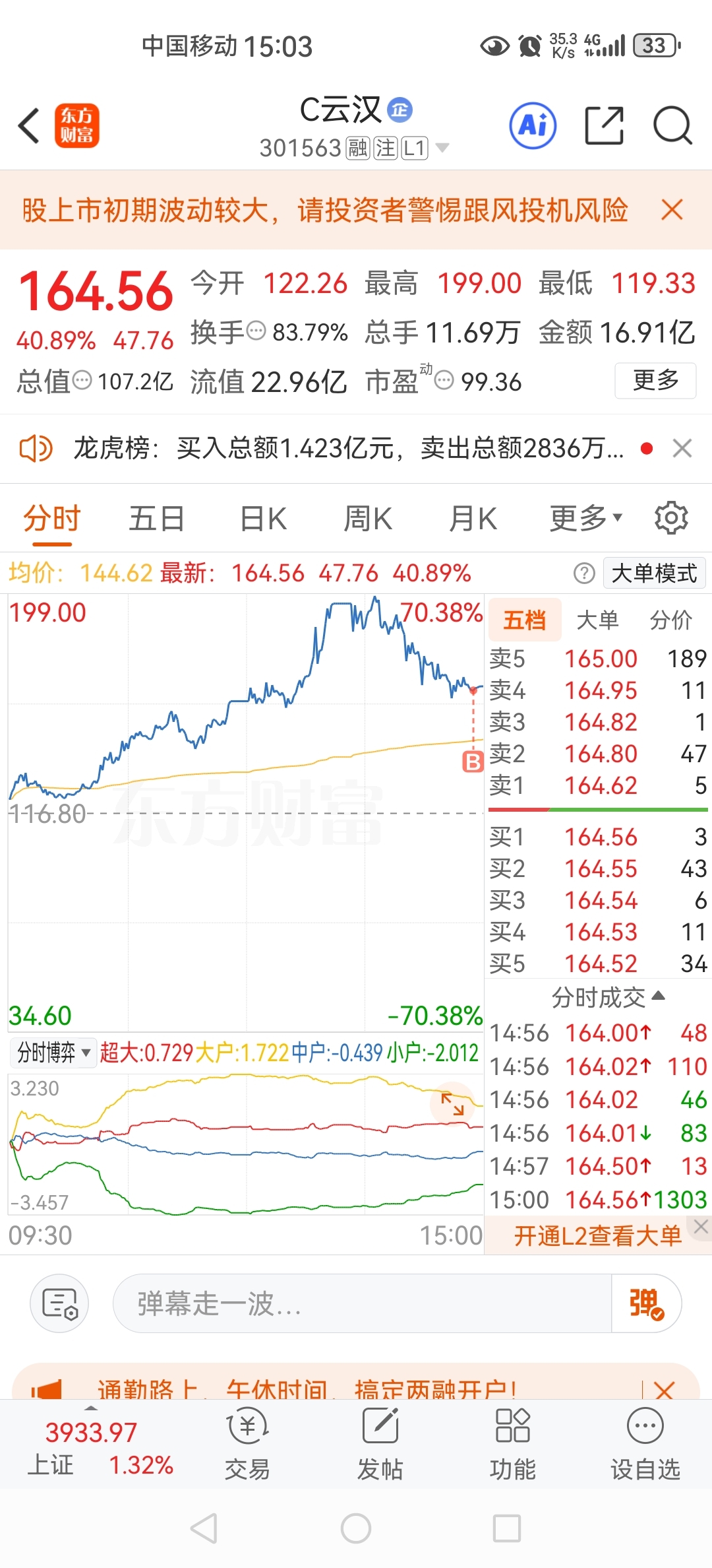 $C云汉(SZ301563)$ 尾盘买了,赌一把