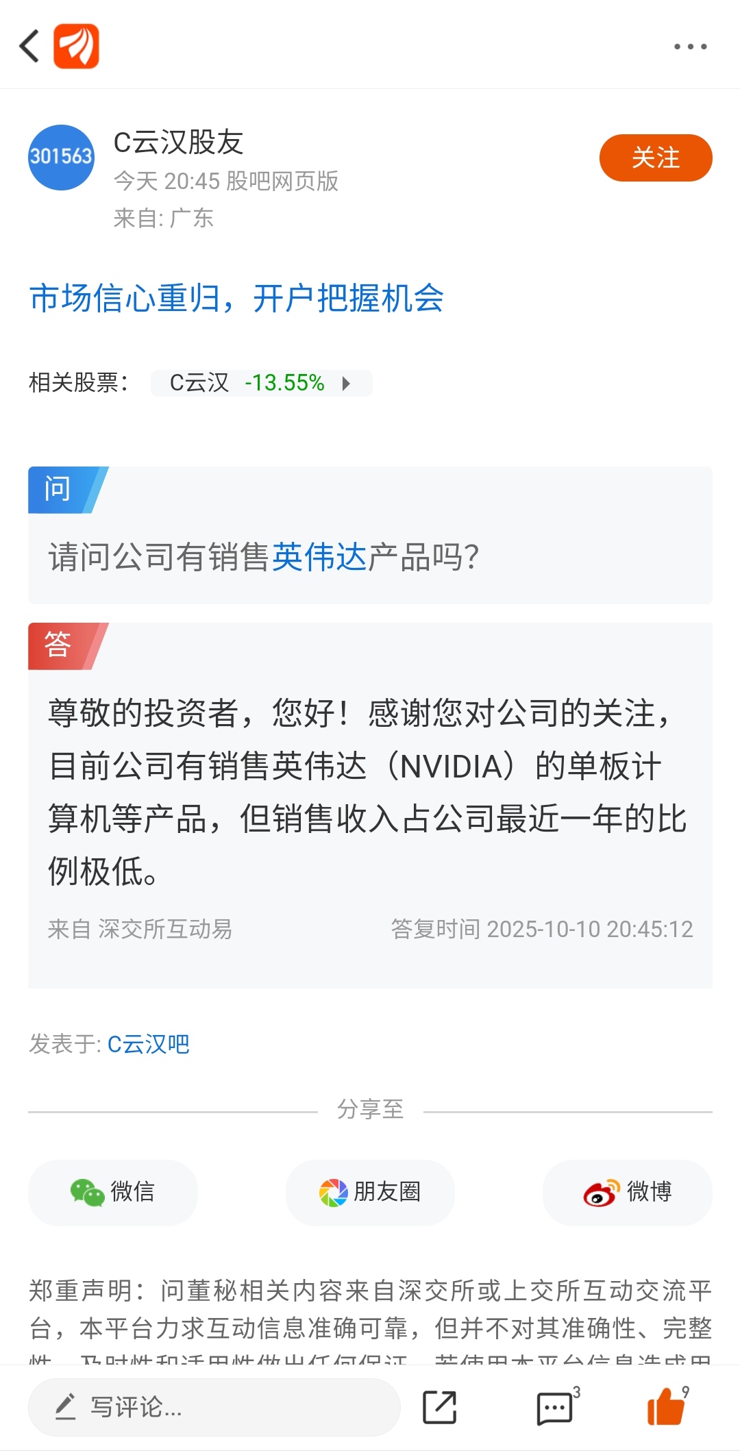 温馨提示: 1.根据《证券法》规定,禁止编造、传播虚假信息或者误导性信息,扰乱证券市场;2.用户在本社区发表的所有资料、言论等仅代表个人观点,与本网站立场无关,不对您构成任何投资建议。用户应基于自己的独立判断,自行决定证券投资并承担相应风险。《东方财富社区管理规定》