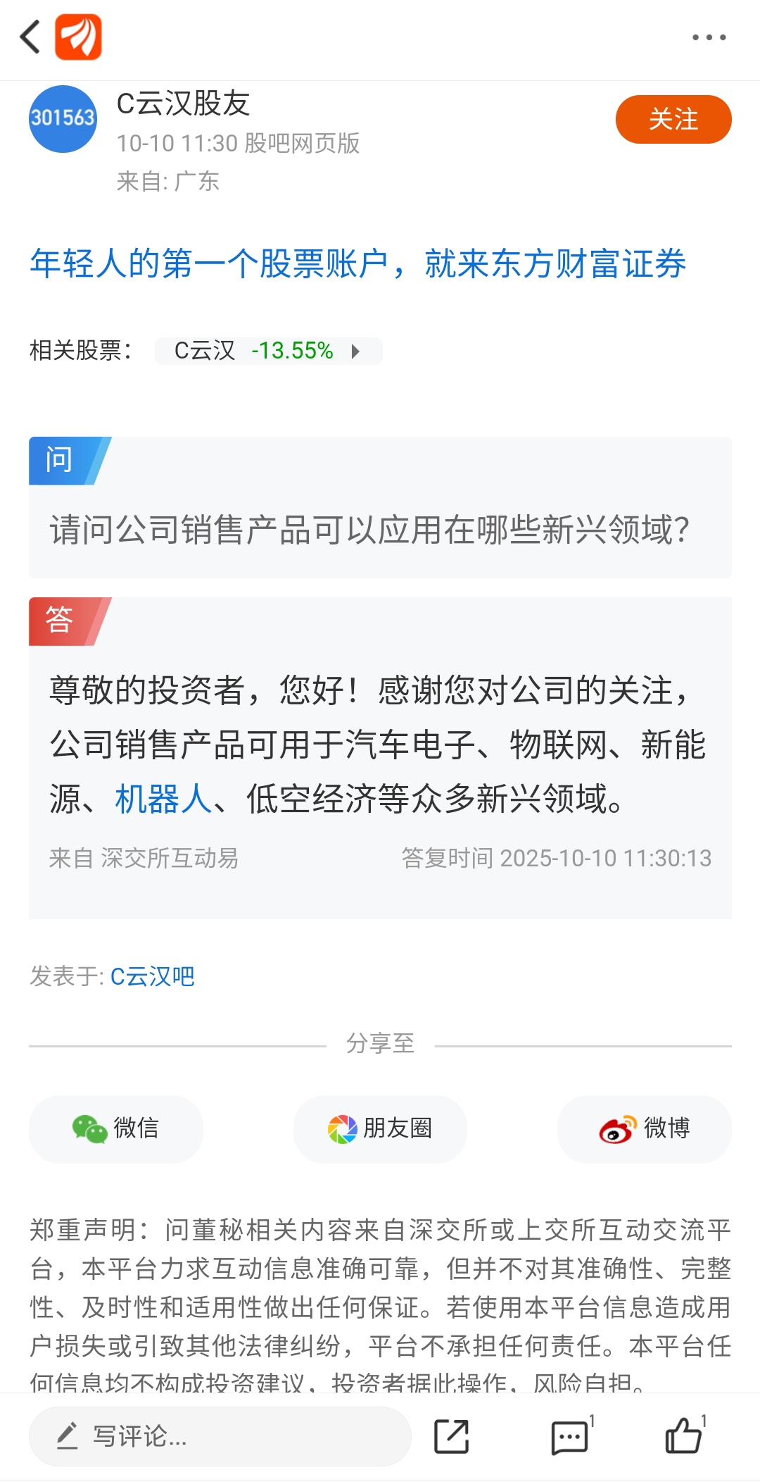 温馨提示: 1.根据《证券法》规定,禁止编造、传播虚假信息或者误导性信息,扰乱证券市场;2.用户在本社区发表的所有资料、言论等仅代表个人观点,与本网站立场无关,不对您构成任何投资建议。用户应基于自己的独立判断,自行决定证券投资并承担相应风险。《东方财富社区管理规定》