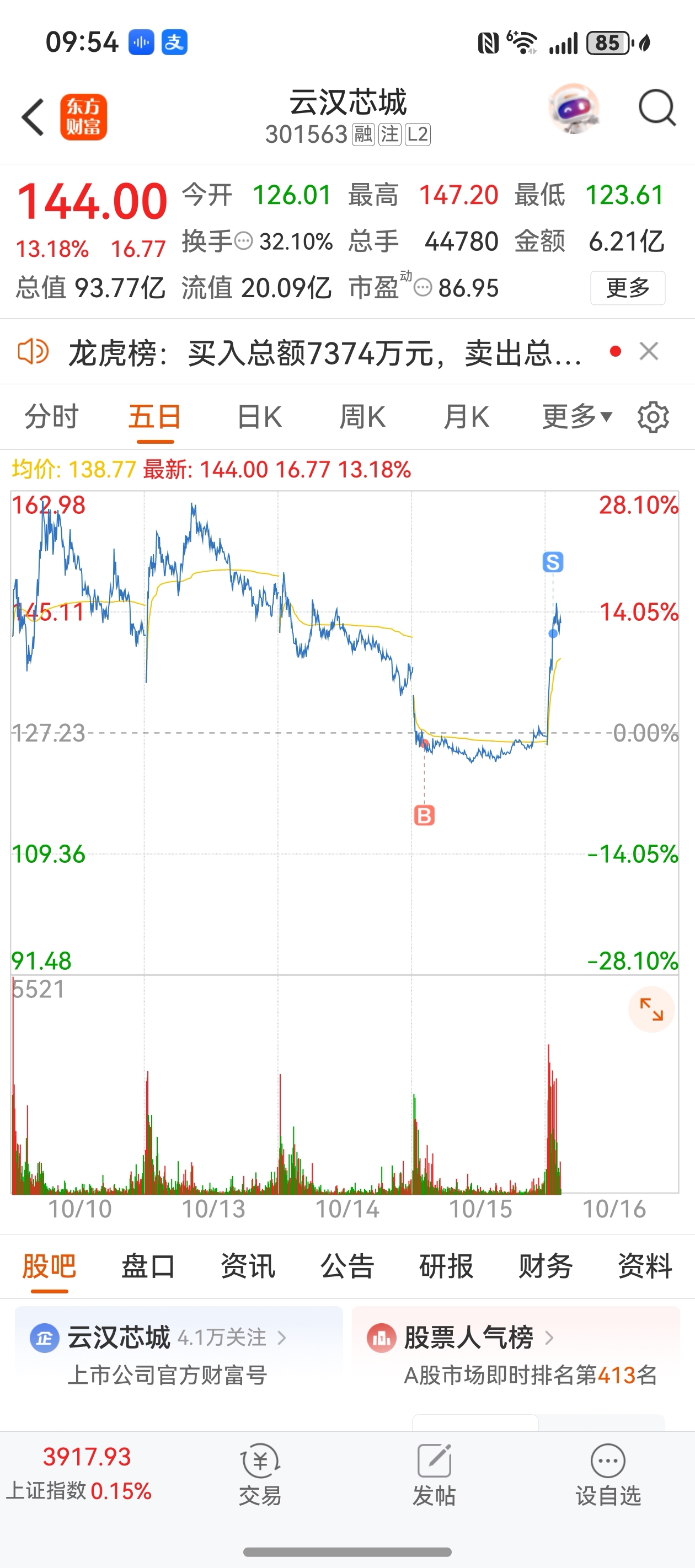 $云汉芯城(SZ301563)$ 不贪 走了