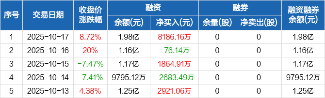 云汉芯城:融资净买入8186.16万元,融资余额1.98亿元(10-17)