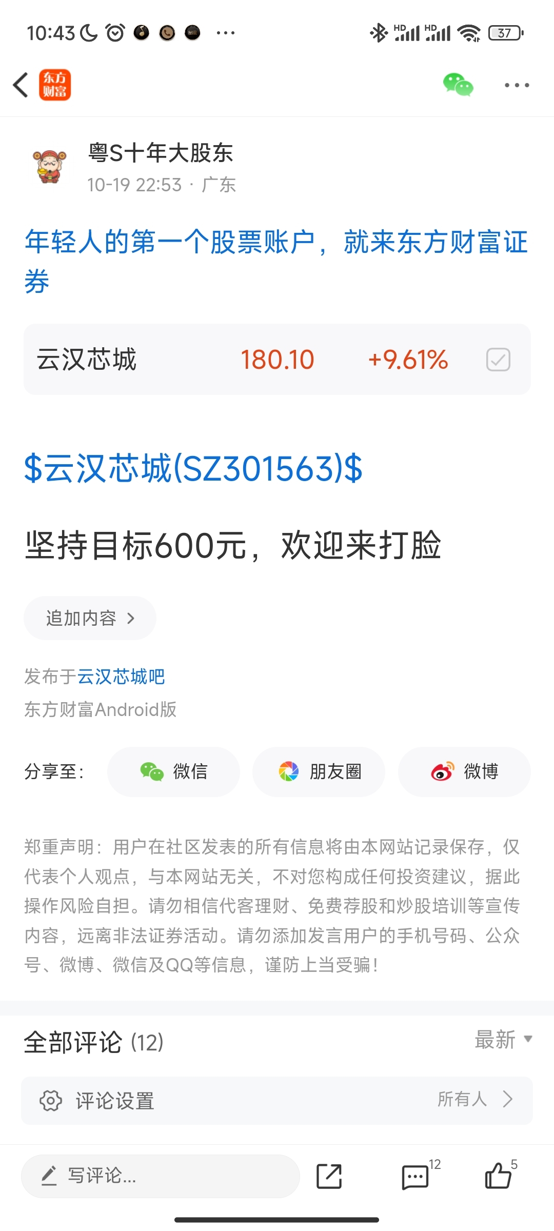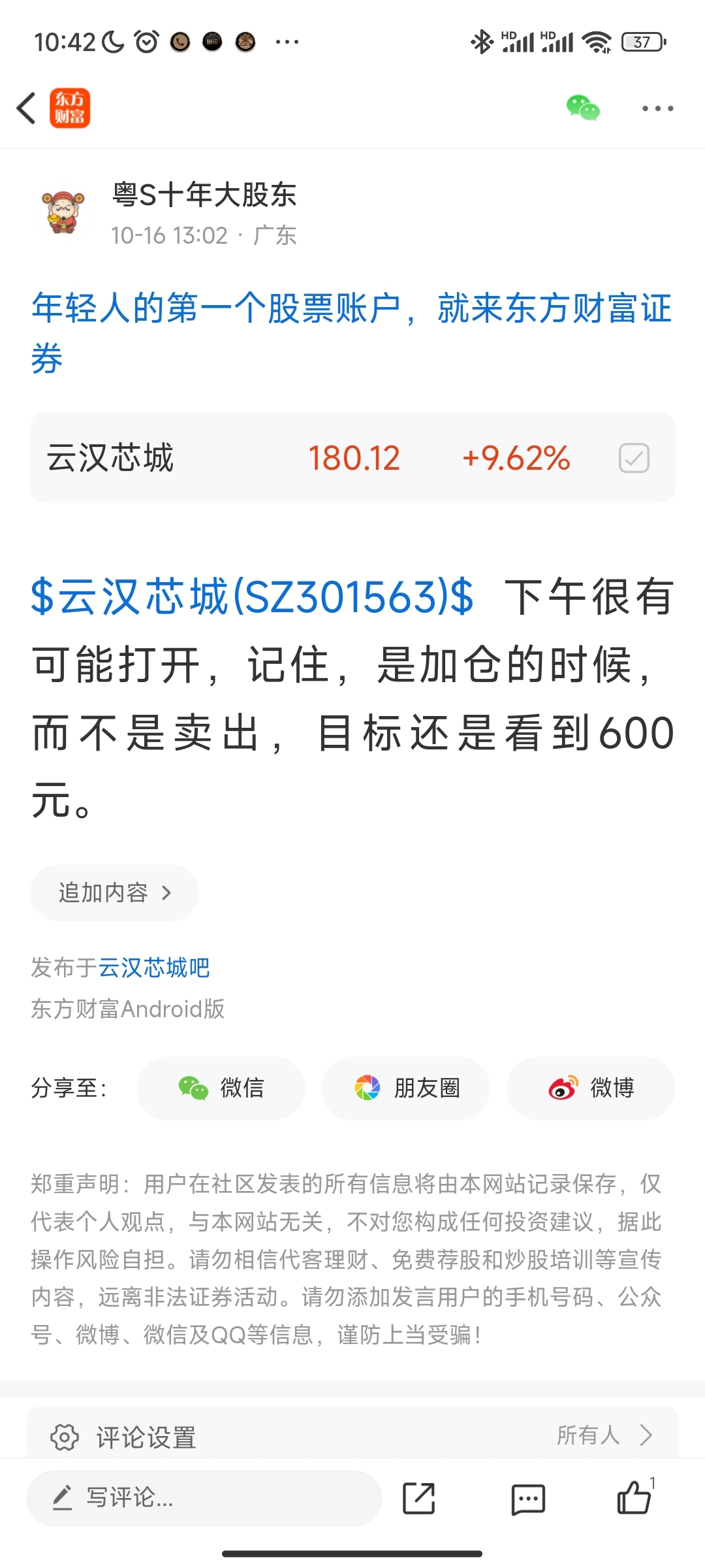 温馨提示: 1.根据《证券法》规定,禁止编造、传播虚假信息或者误导性信息,扰乱证券市场;2.用户在本社区发表的所有资料、言论等仅代表个人观点,与本网站立场无关,不对您构成任何投资建议。用户应基于自己的独立判断,自行决定证券投资并承担相应风险。《东方财富社区管理规定》