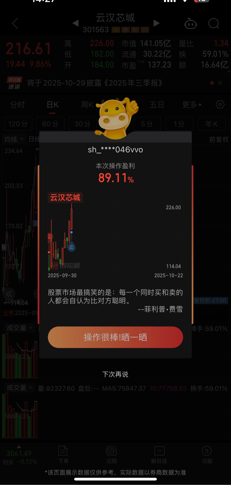 $云汉芯城(SZ301563)$ 拿了11天!感恩