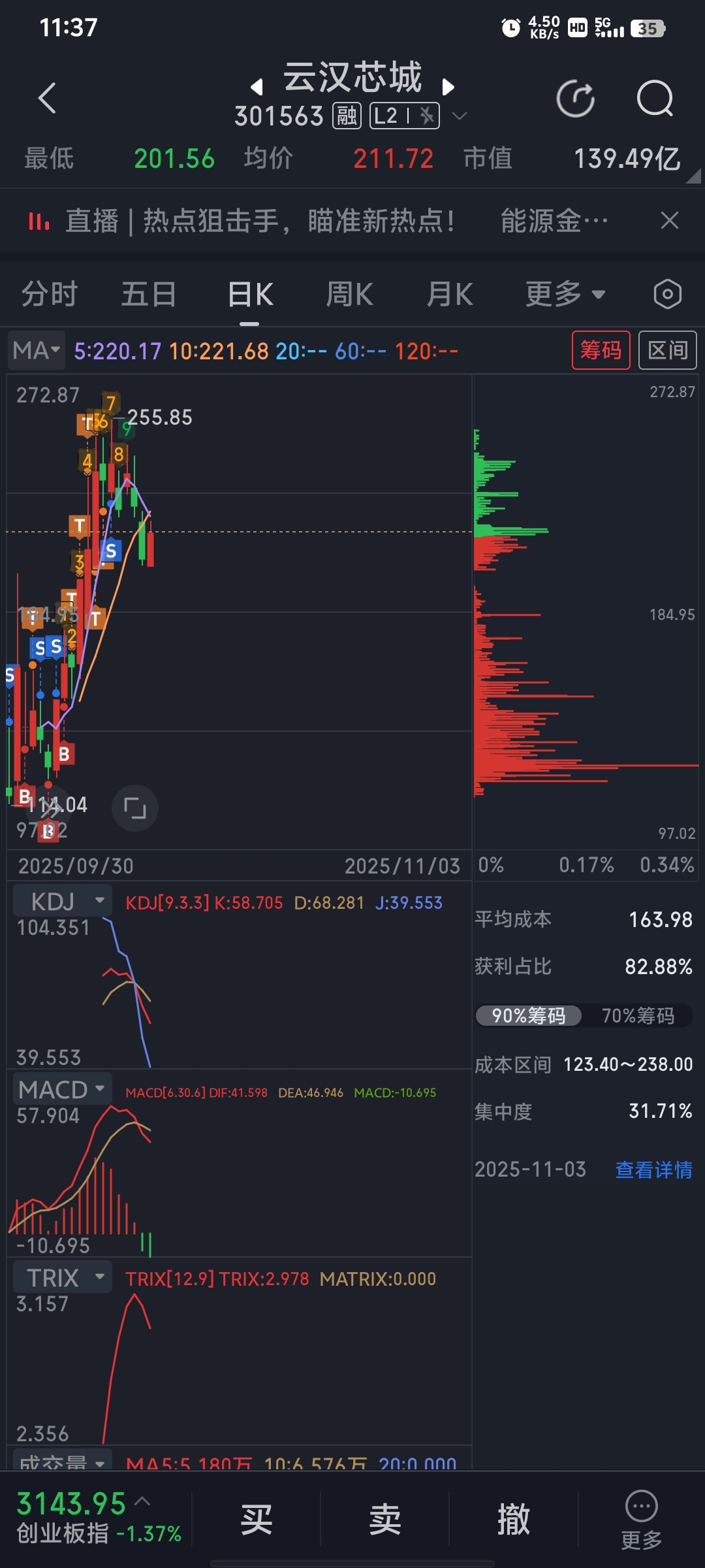 $云汉芯城(SZ301563)$ 再等几个交易日,趋势线不漂亮。