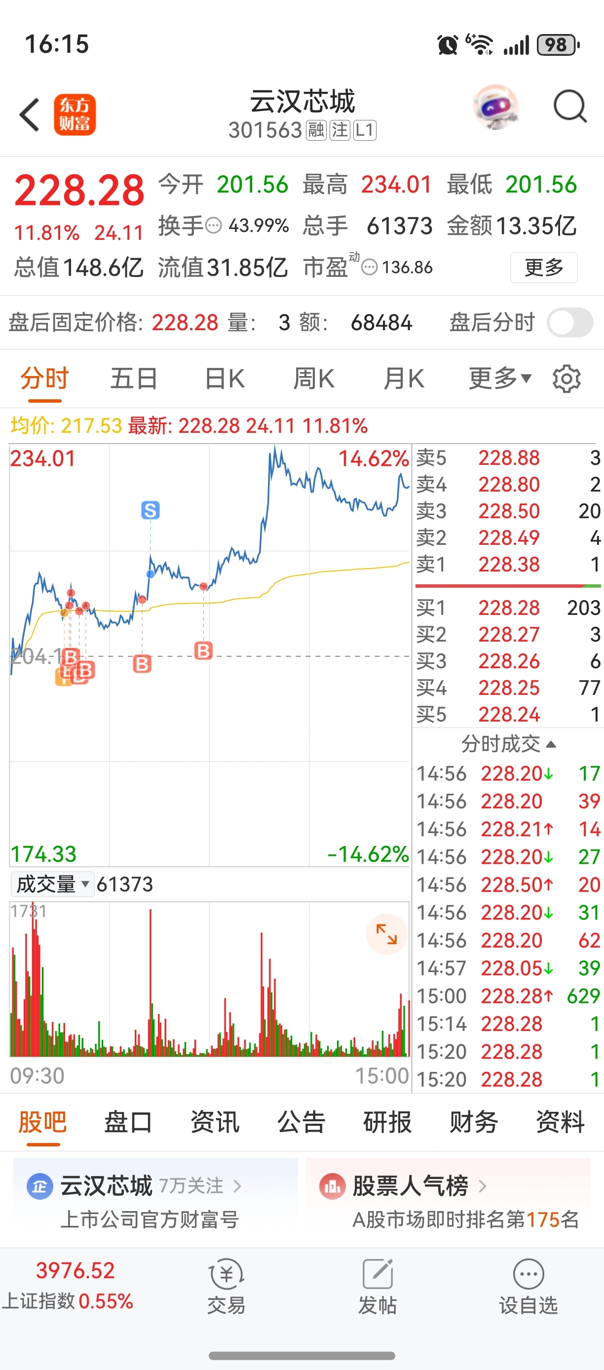 $云汉芯城(SZ301563)$ 既然已站上5、10日线了,那明天大踏步前行