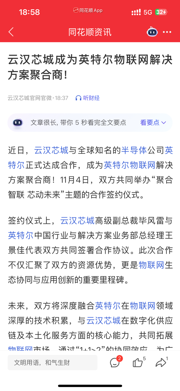$云汉芯城(SZ301563)$ 这是傍上英特尔的大腿了啊!明天20米的大长腿!