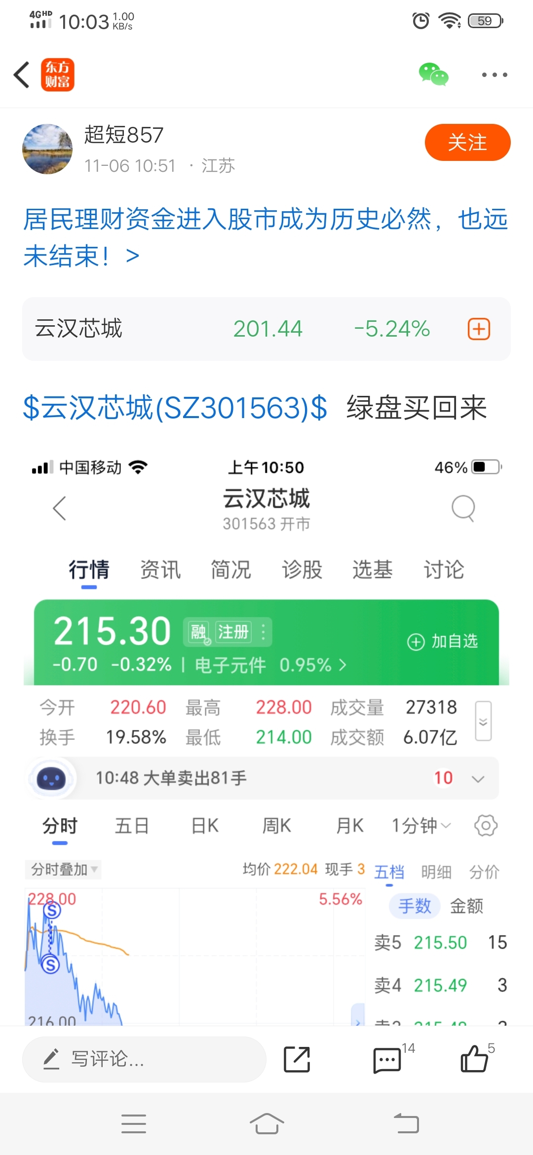 $云汉芯城(SZ301563)$ 下面请昨天215.30买入的得瑟狗出来吠两声
