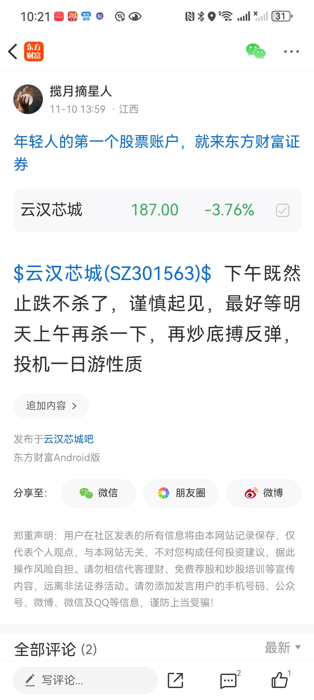 温馨提示: 1.根据《证券法》规定,禁止编造、传播虚假信息或者误导性信息,扰乱证券市场;2.用户在本社区发表的所有资料、言论等仅代表个人观点,与本网站立场无关,不对您构成任何投资建议。用户应基于自己的独立判断,自行决定证券投资并承担相应风险。《东方财富社区管理规定》