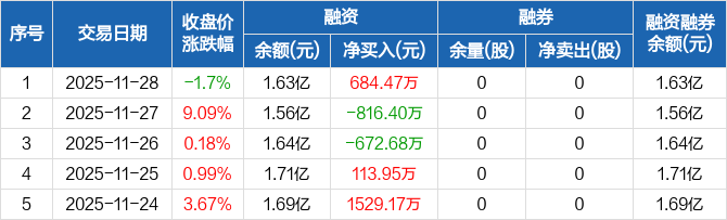 云汉芯城:融资净买入684.47万元,融资余额1.63亿元(11-28)