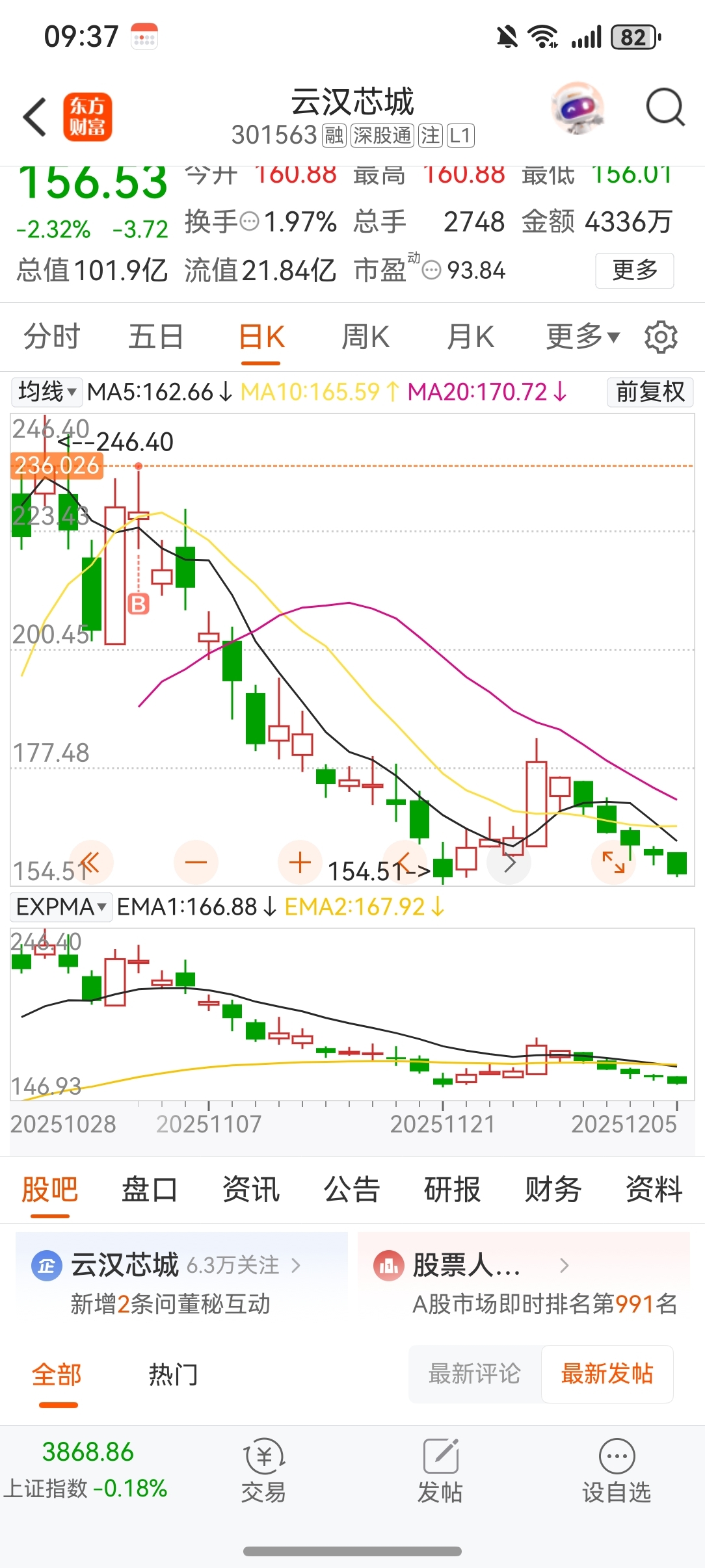 $云汉芯城(SZ301563)$ 心痛的无法呼吸